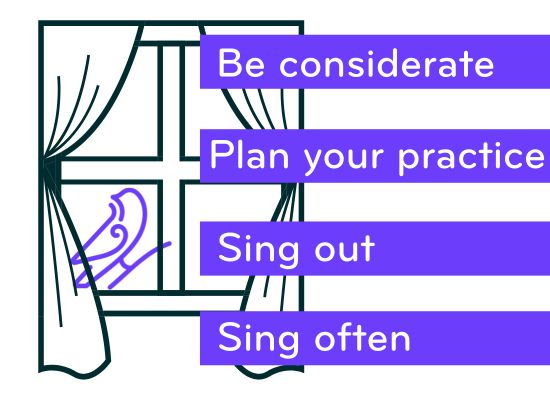 So, keeping your practice session short (10-30 mins is fine!) is good for you, and for your household! If you want to sing more, come back to it later in the day!